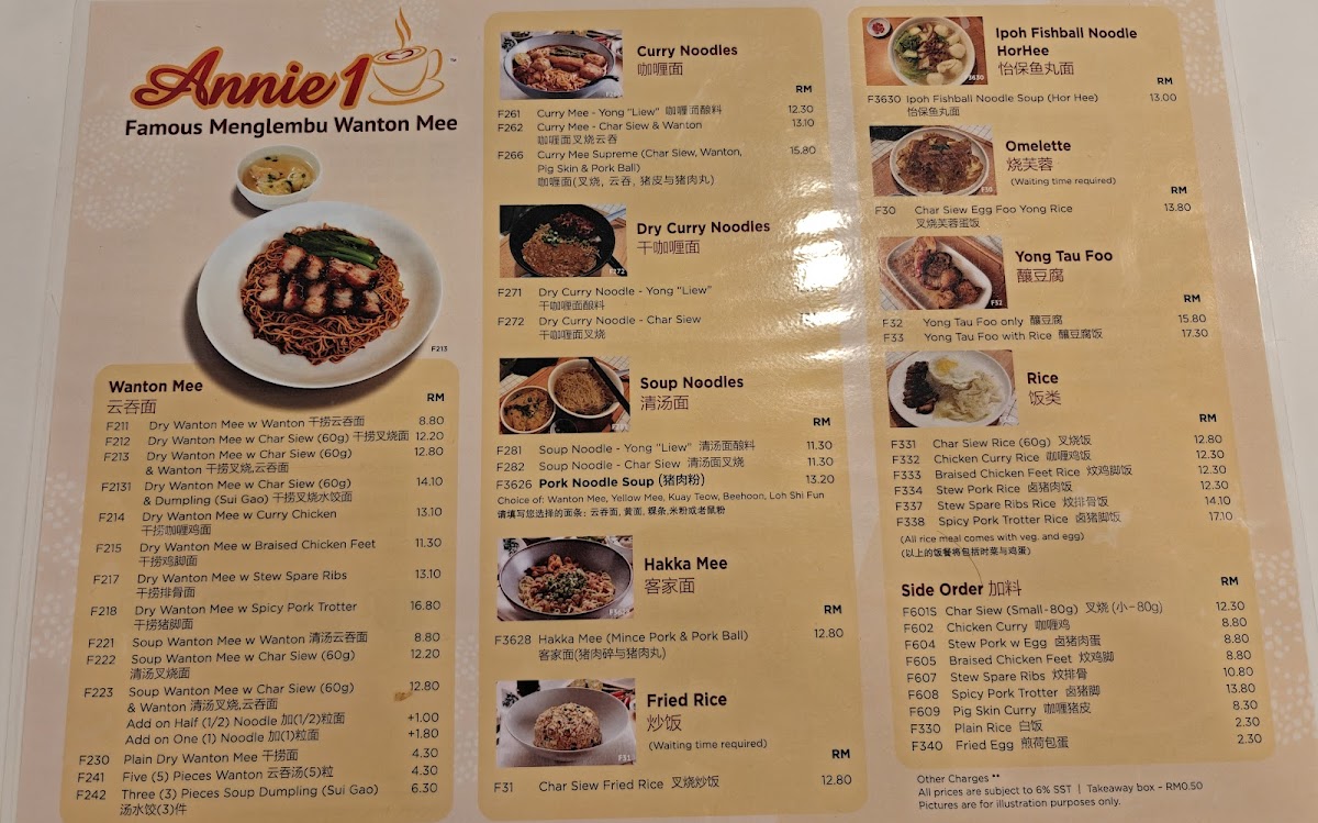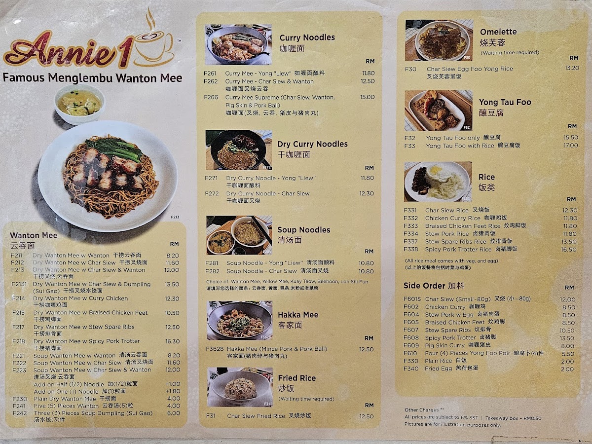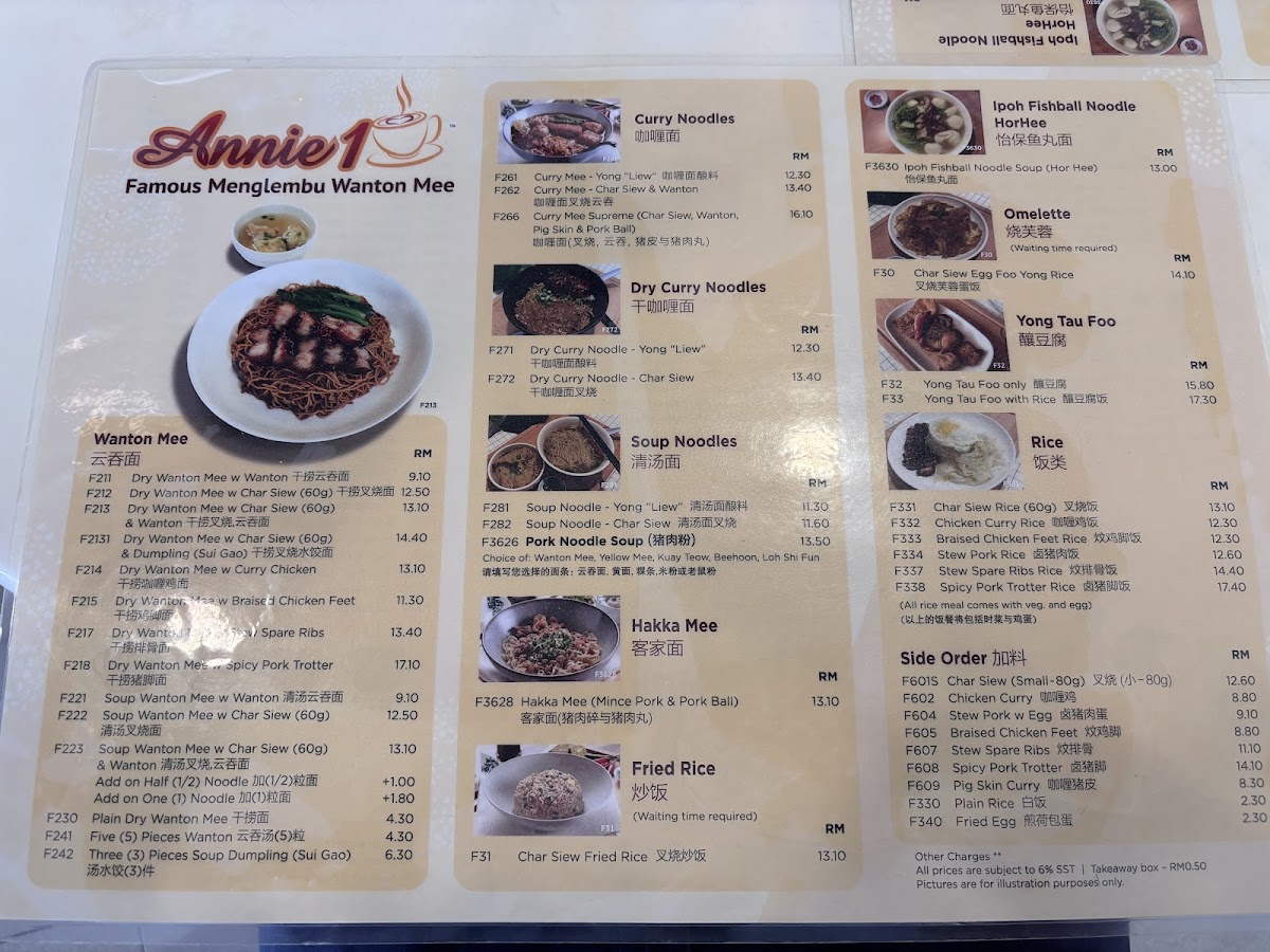 Welcome to Annie 1, a delightful Chinese restaurant nestled in the heart of Damansara Utama, Malaysia. Renowned for its authentic Ipoh-style culinary offerings, Annie 1 presents a menu that is a nostalgic homage to traditional flavors. The Wanton Mee, praised for its springy noodles and perfectly charred char siew, embodies comfort and satisfaction, drizzled with a harmonious dark soy sauce. Customers rave about the Dry Hakka Mee, featuring chewy noodles paired with savory minced pork and crispy lard.
